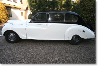 business. These are very popular dual purpose wedding cars being able to take up to seven bridesmaids to the church and then return for the Bride. The car was re-sprayed in Old English white and black at the time and still looks excellent. The bodywork is extremely good, straight and blemish free. All the doors are solid and the steps are all solid and faced in chequer plate. |